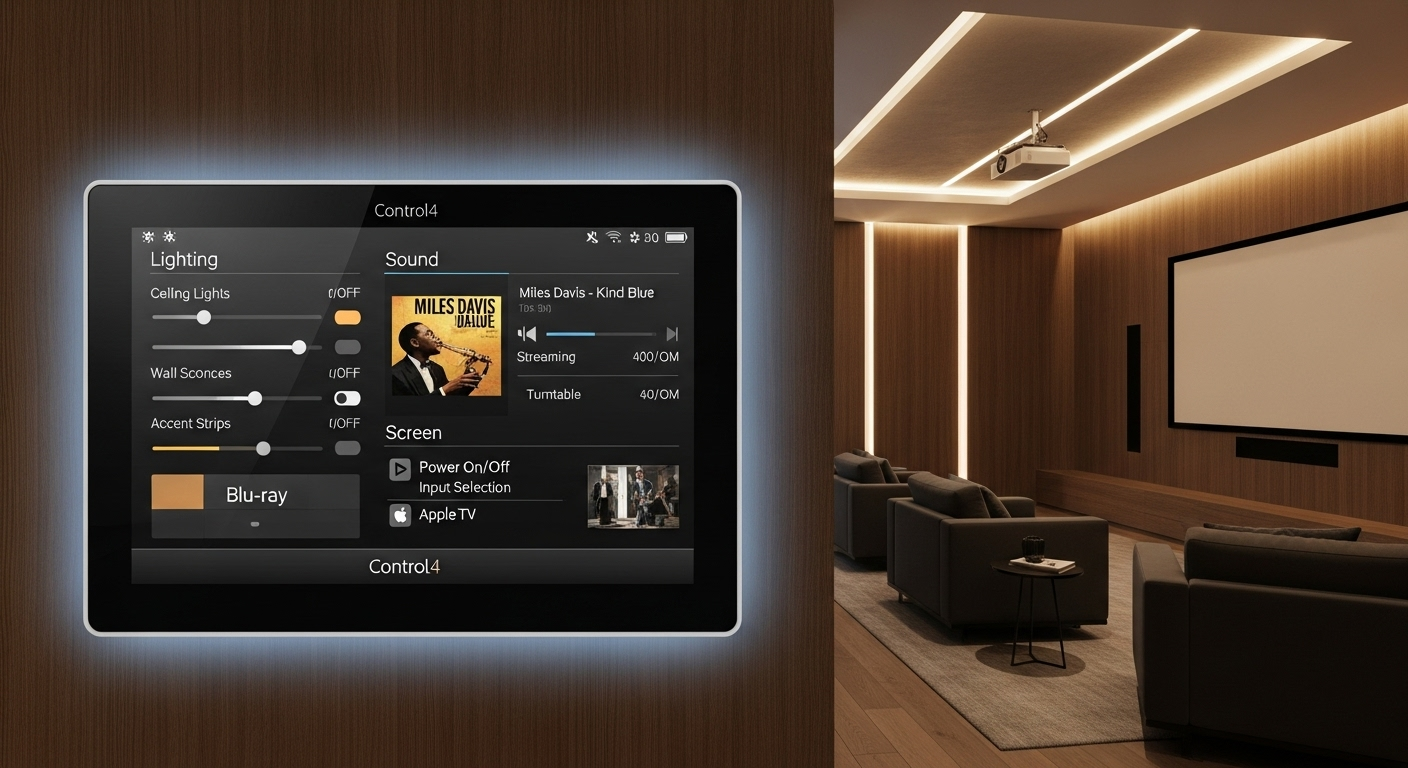 With systems like Control4 home theater integration and Crestron cinema automation, every element of your theater can be orchestrated with a single touch. Imagine this: you tap a button on your smartphone, wall keypad, or sleek touch panel. Instantly, the lights dim, the blackout shades glide into place, the projector screen lowers, and the surround sound comes alive. No remotes to juggle, no settings to fuss over, just pure, intuitive control.