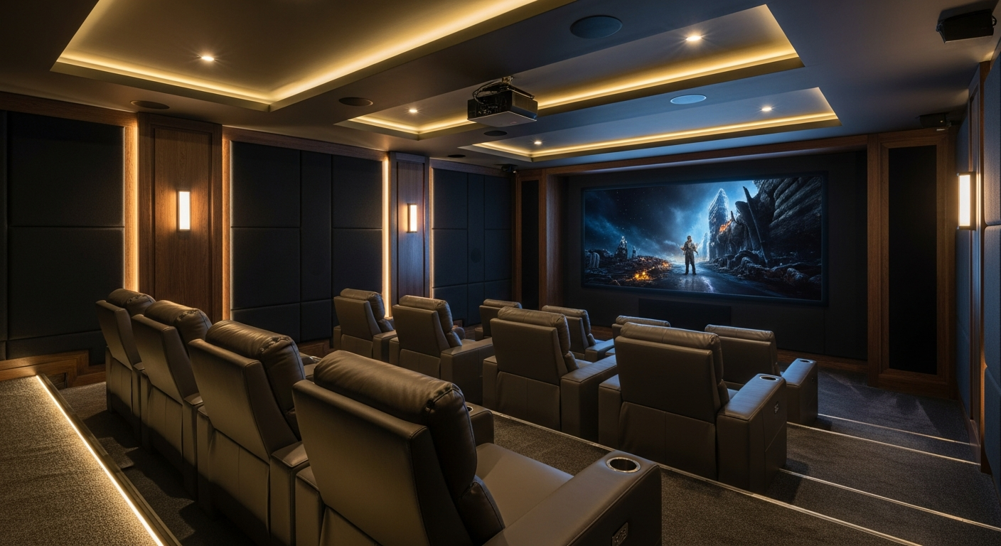 Home theaters are also gaining new momentum. Instead of being a “bonus room,” families increasingly treat theaters as core living spaces for gaming, movies, sports, and even fitness. Architecturally, this leads to more sound-treated rooms, flexible layouts, and built-in display options like 4K/8K projection or micro-LED walls.